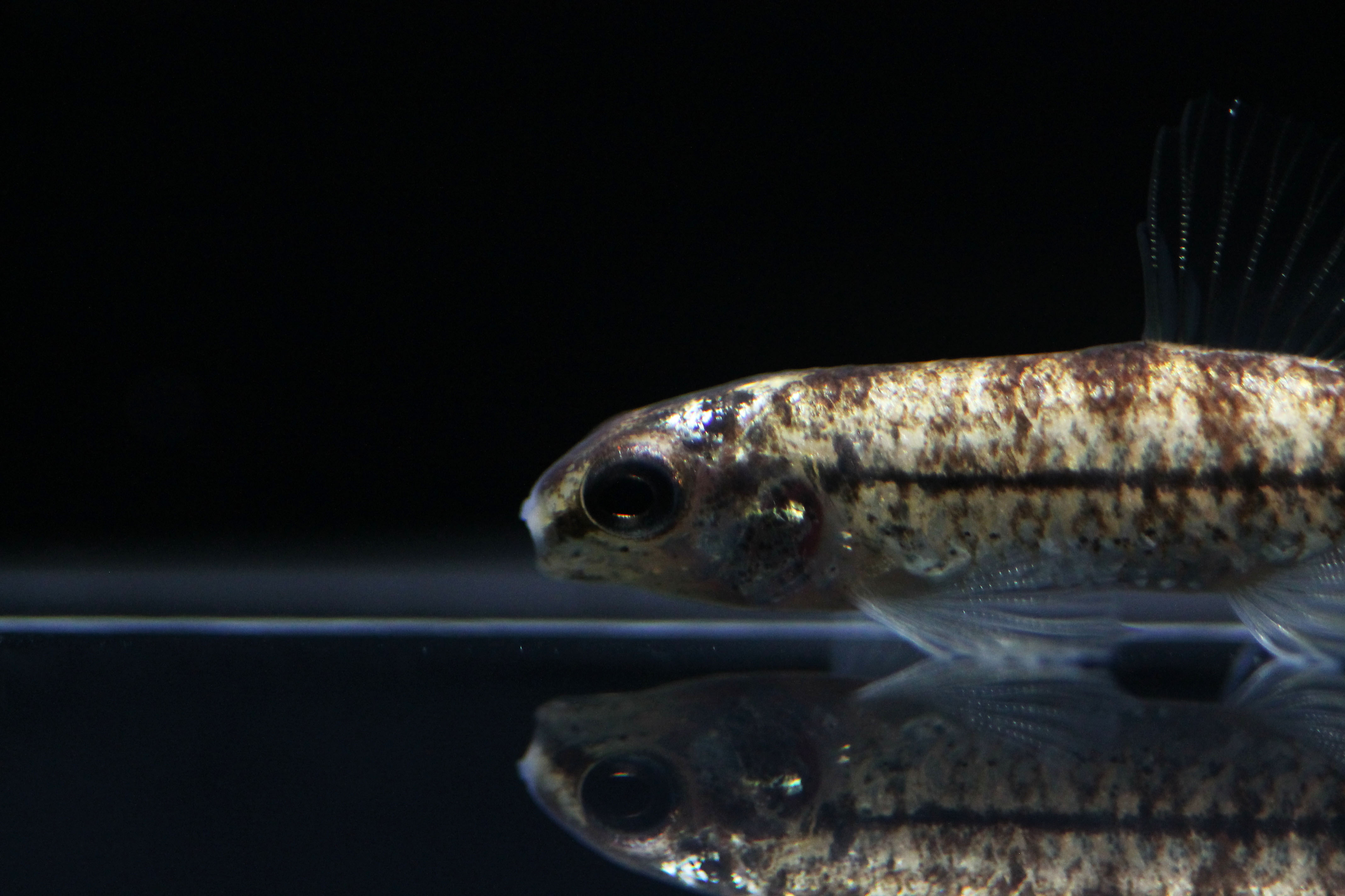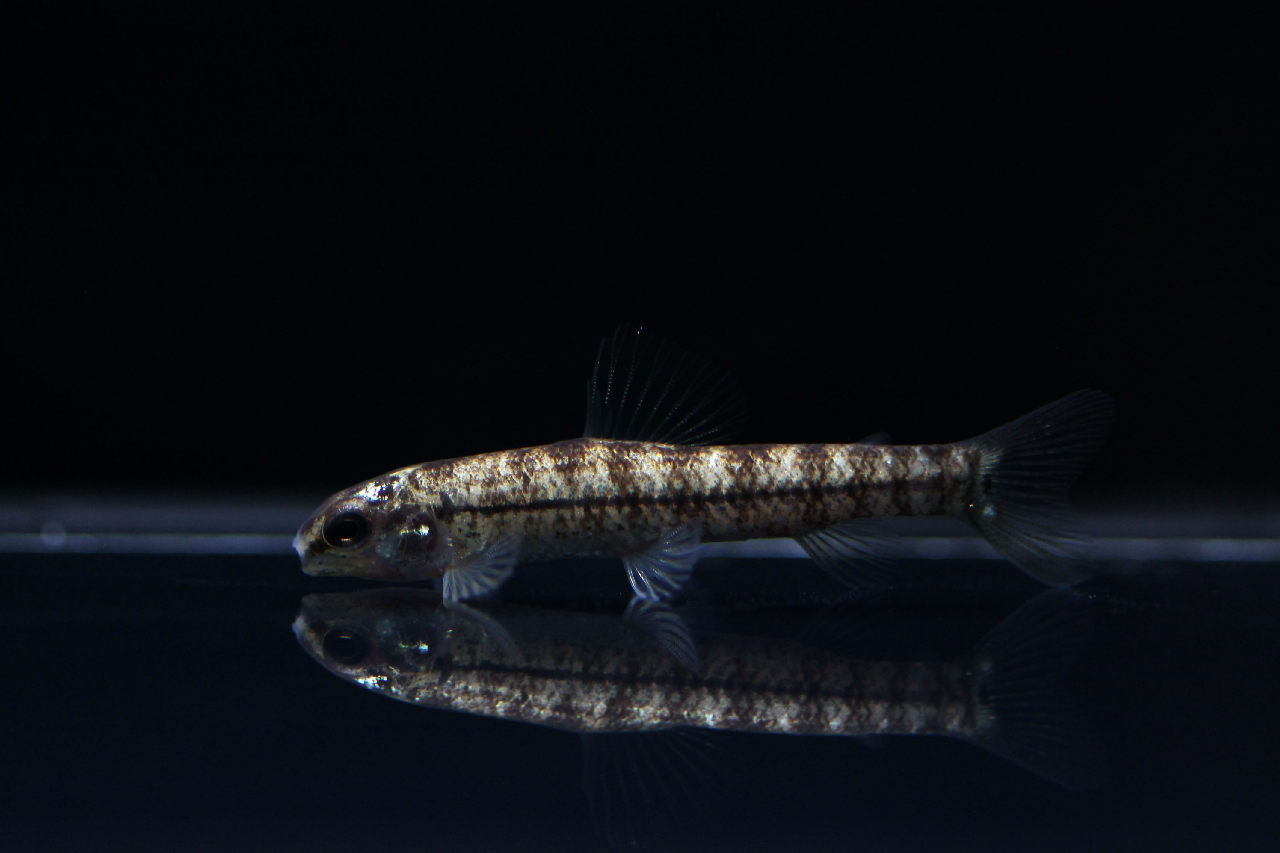 挾帶輸入的稀有白金版跳鱸,目前從體型及習性判斷是Characidium屬的跳鱸品種,庫存僅有2隻。